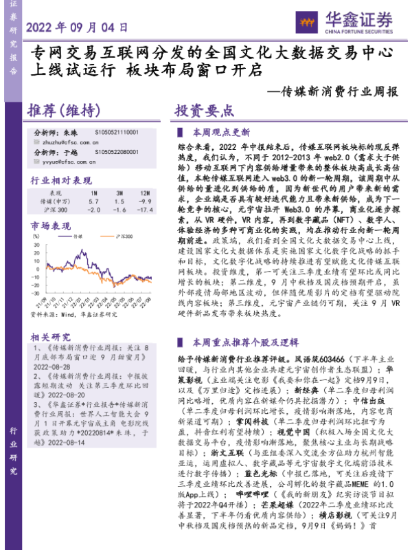 【华鑫证券】【20220904】专网交易互联网分发的全国文化大数据交易中心上线试运行 板块布局窗口开启-20页 行业研究