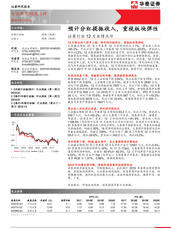【华泰证券】【20190110】证券行业12月业绩点评:预计分红提振收入,重视板块弹性-3页 行业研究