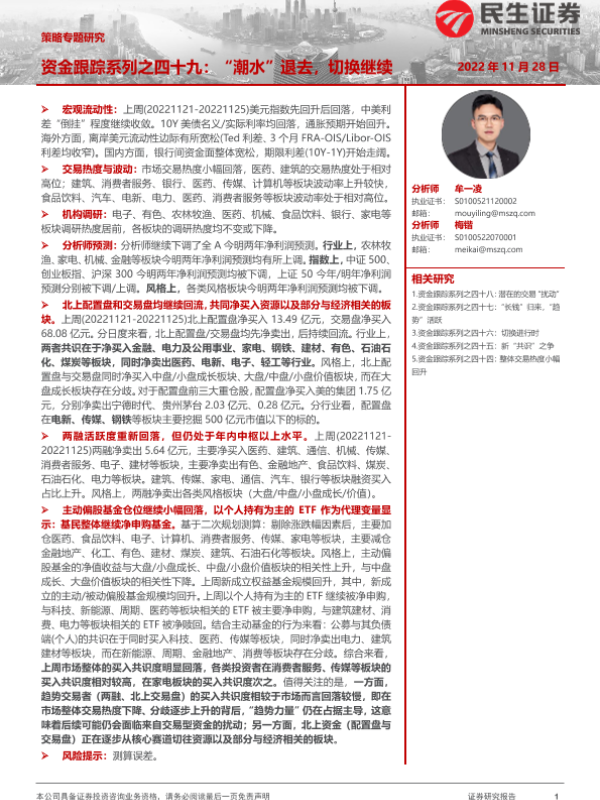【民生证券】【20221128】策略专题研究:资金跟踪系列之四十九,“潮水”退去,切换继续-35页 行业研究