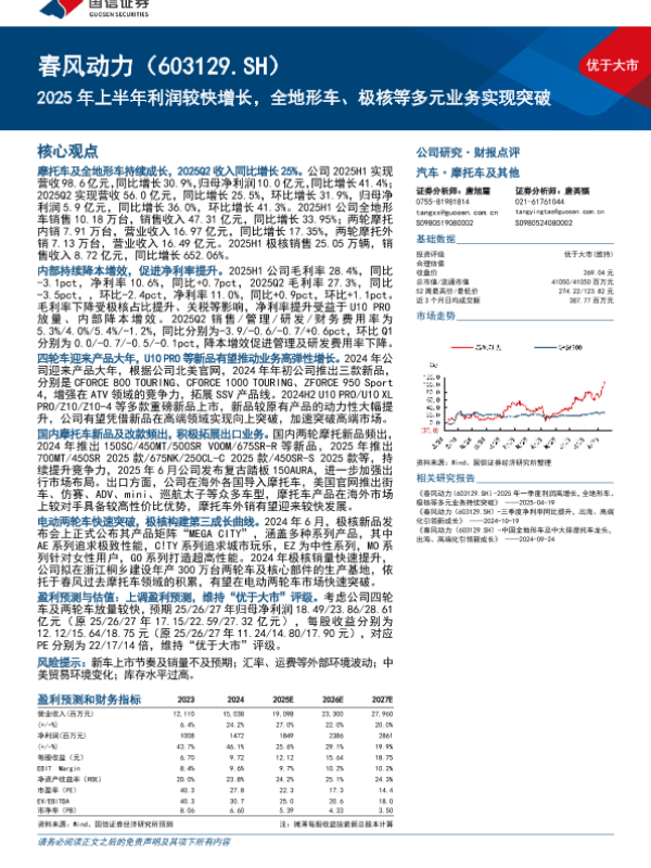 【国信证券】【202508】春风动力(603129)2025年上半年利润较快增长,全地形车、极核等多元业务实现突破-11页 证券期货研究报告