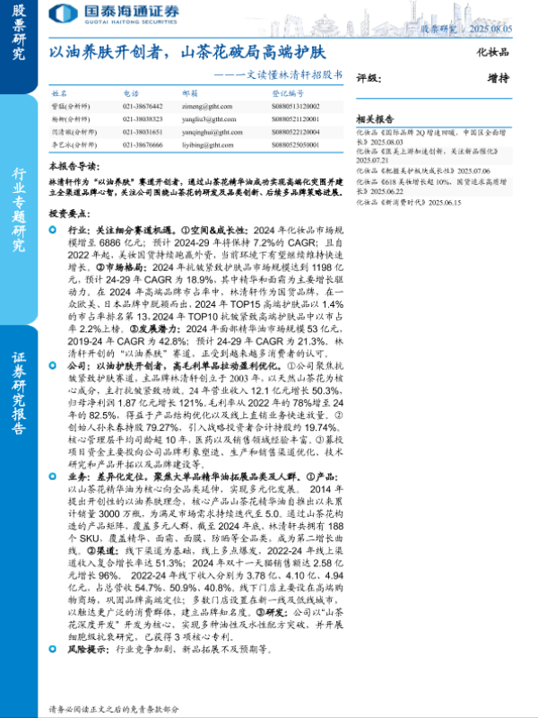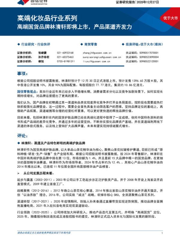 【国信证券】【202511】高端化妆品行业系列高端国货品牌林清轩即将上市,产品渠道齐发力-14页 证券期货研究报告
