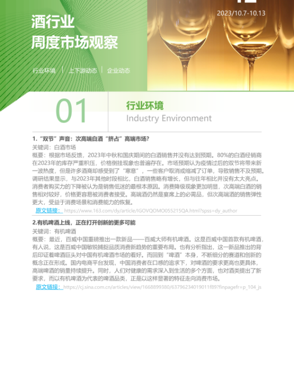 【艾瑞咨询】【20231013】2023年第42周:酒行业周度市场观察-6页 行业研究