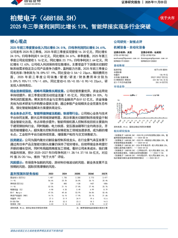 【国信证券】【202511】2025年三季度利润同比增长13%,智能焊接实现多行业突破-6页 证券期货研究报告