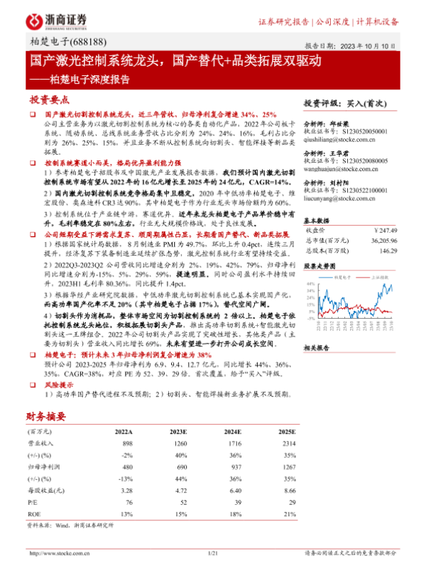 【浙商证券】【20231010】柏楚电子深度报告:国产激光控制系统龙头,国产替代+品类拓展双驱动-21页 行业研究