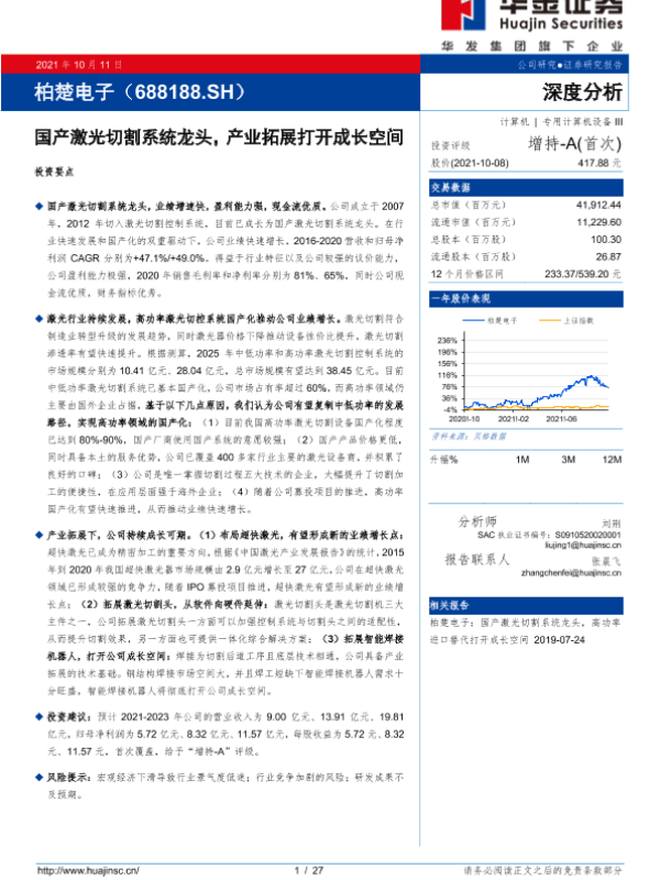 【华金证券】【20211011】国产激光切割系统龙头,产业拓展打开成长空间-27页 行业研究