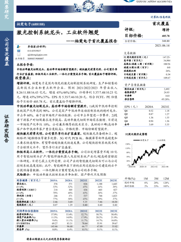 【国泰君安证券】【20210614】柏楚电子首次覆盖报告:激光控制系统龙头,工业软件翘楚-23页 行业研究