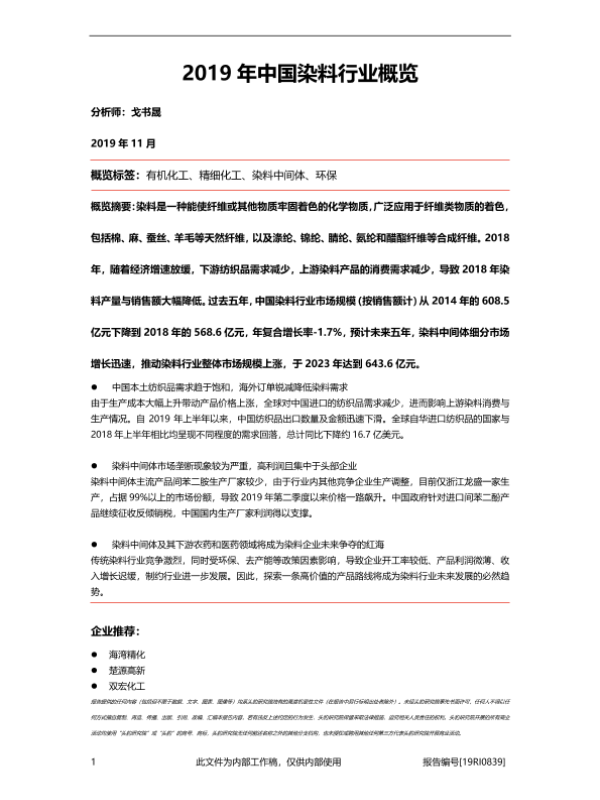 【头豹研究院】【201911】2019年中国染料行业概览-28页 行业研究
