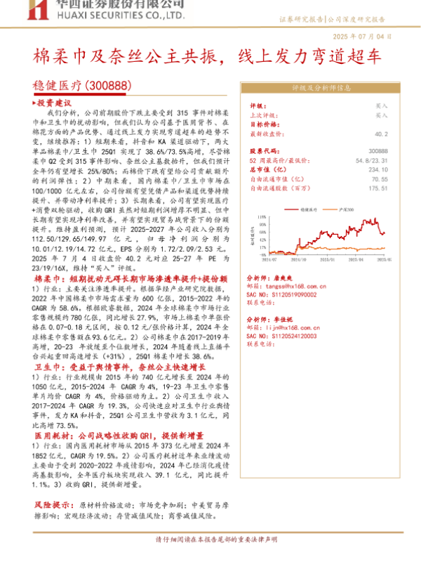 【国泰海通证券】【20250708】稳健医疗(300888)全棉时代消费品业务深度报告:擘画多维变革路,稳健笃行见真章-27页 公司研究