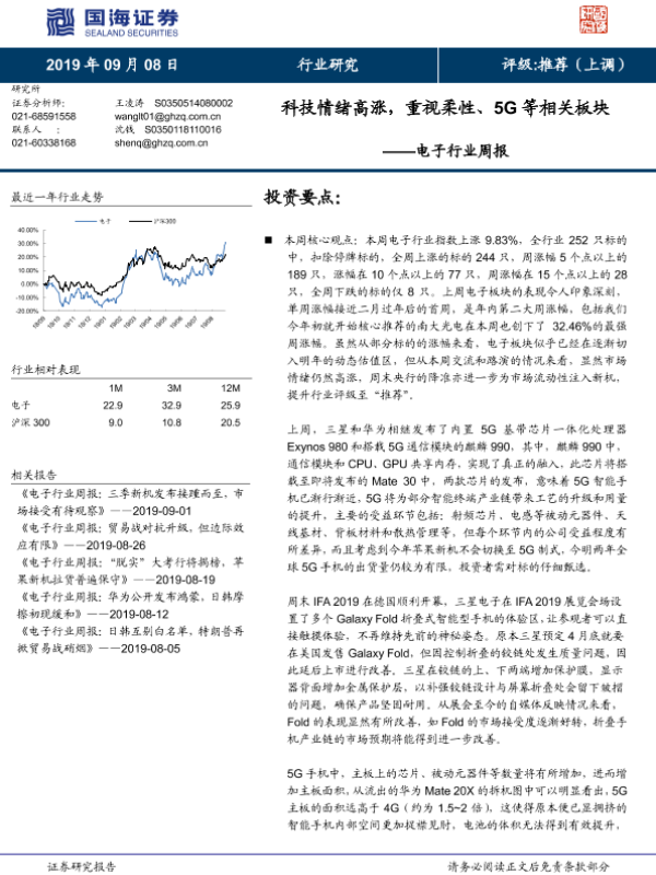 【国海证券】【20190908】电子行业周报:科技情绪高涨,重视柔性、5G等相关板块-14页 行业研究