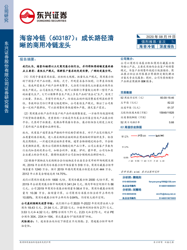 【东兴证券】【20200819】海容冷链:成长路径清晰的商用冷链龙头-18页 行业研究