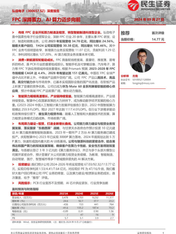 【民生证券】【20240927】弘信电子(300657)深度报告:FPC深蹲蓄力,AI算力迈步向前-35页 行业研究