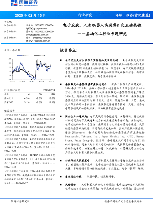【国海证券】【20250215】基础化工行业专题研究:电子皮肤,人形机器人实现感知交互的关键-14页 行业研究
