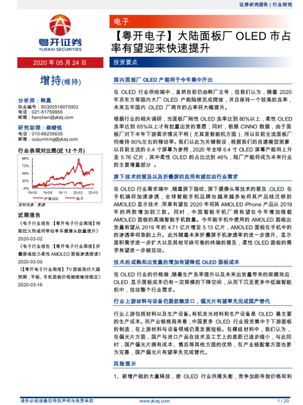 【粤开证券】【20200524】大陆面板厂OLED市占率有望迎来快速提升-20页 行业研究