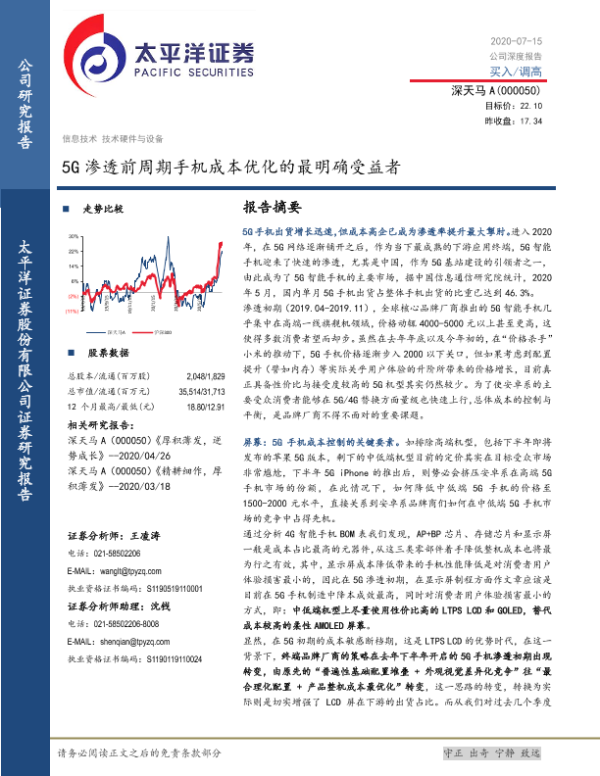【太平洋证券】【20200715】5G渗透前周期手机成本优化的最明确受益者-22页 行业研究