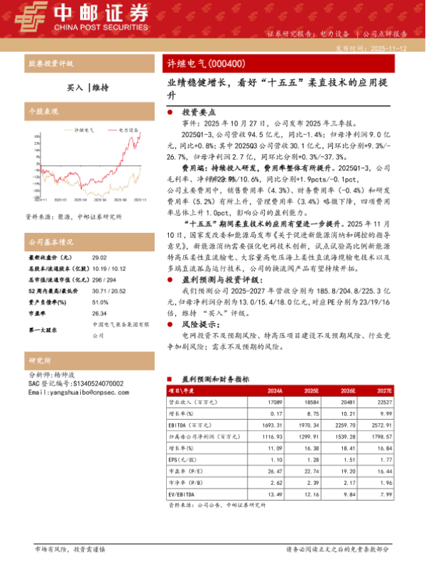 【中邮证券】【202511】业绩稳健增长,看好“十五五”柔直技术的应用提升-4页 证券期货研究报告