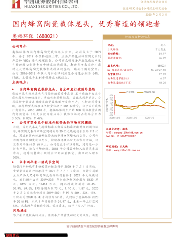 【华西证券】【20200203】国内蜂窝陶瓷载体龙头,优秀赛道的领跑者-27页 行业研究