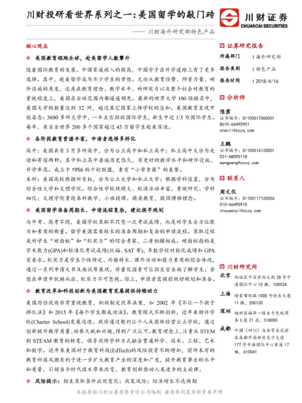 【川财证券】【20180416】美国留学的敲门砖-24页 行业研究