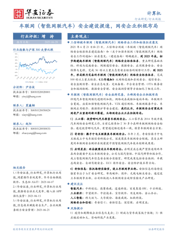 【华安证券】【20210628】车联网(智能网联汽车)安全建设提速,网安企业积极布局-14页 行业研究