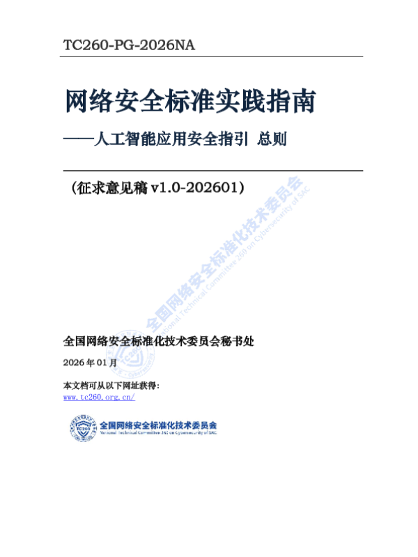 【全国网络安全标准化技术委员会秘书处】【202601】网络安全标准实践指南——人工智能应用安全指引总则-27页 指南