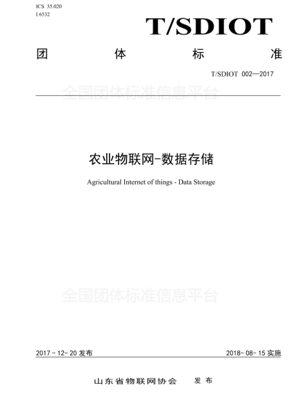 【山东省物联网协会】【20180815】T/SDIOT 002—2017 农业物联网-数据存储-10页 技术文档