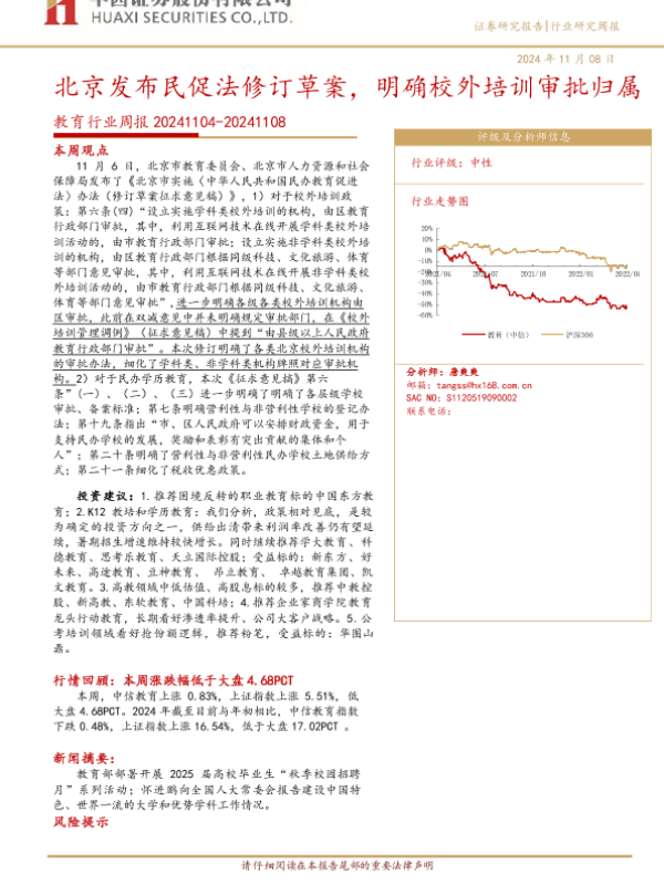 【华西证券】【20241108】北京发布民促法修订草案,明确校外培训审批归属-16页 行业研究