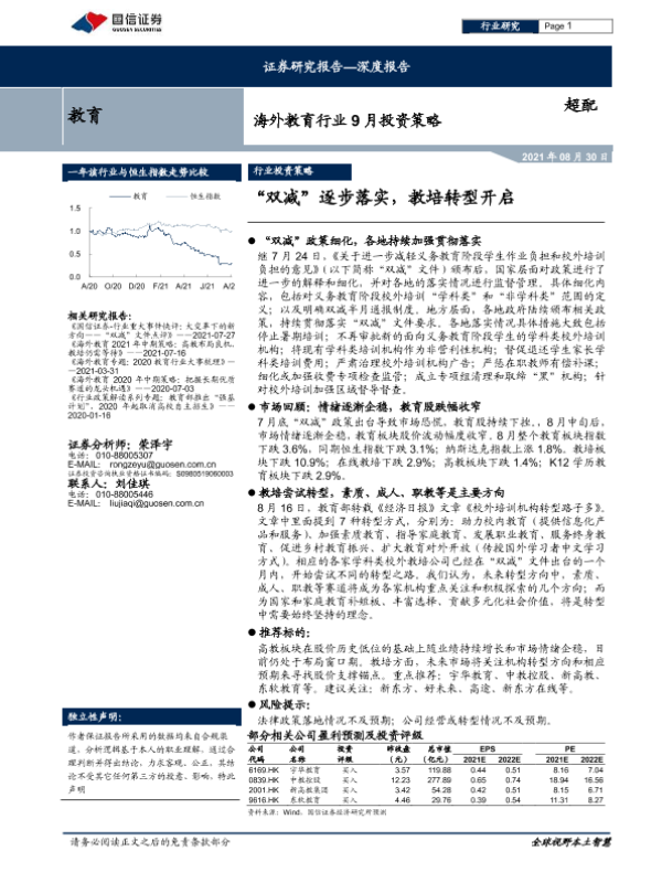 【国信证券】【20210830】海外教育行业9月投资策略:“双减”逐步落实,教培转型开启-13页 行业研究