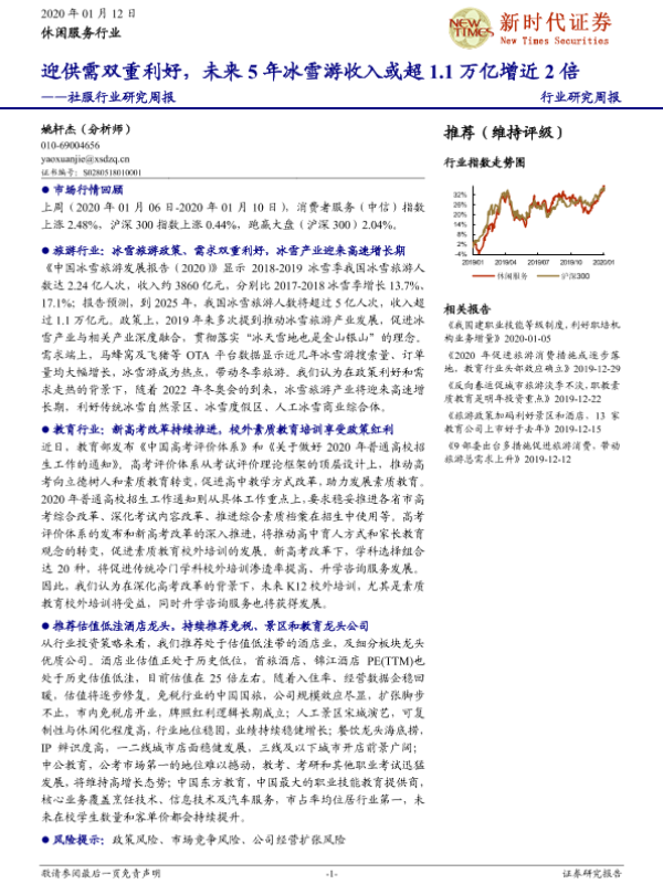 【新时代证券】【20200112】社服行业研究周报:迎供需双重利好,未来5年冰雪游收入或超1.1万亿增近2倍-14页 行业研究
