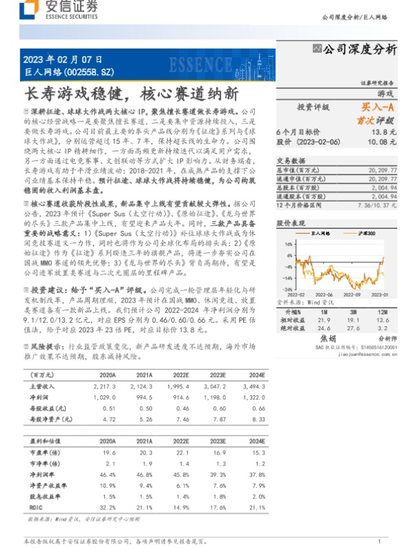 【安信证券】【20230207】巨人网络(002558)长寿游戏稳健,核心赛道纳新-20页 行业研究