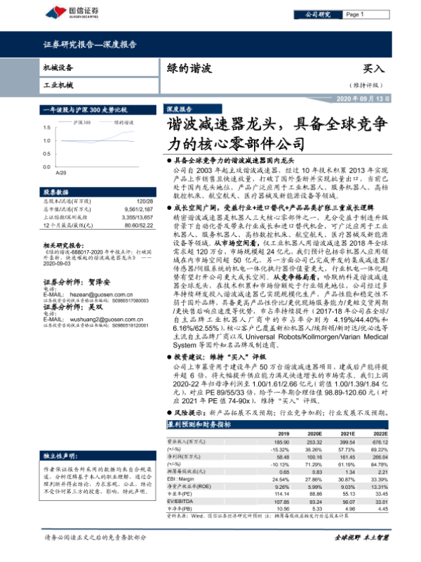 【国信证券】【20200913】绿的谐波-688017.SH-谐波减速器龙头,具备全球竞争力的核心零部件公司-27页 行业研究