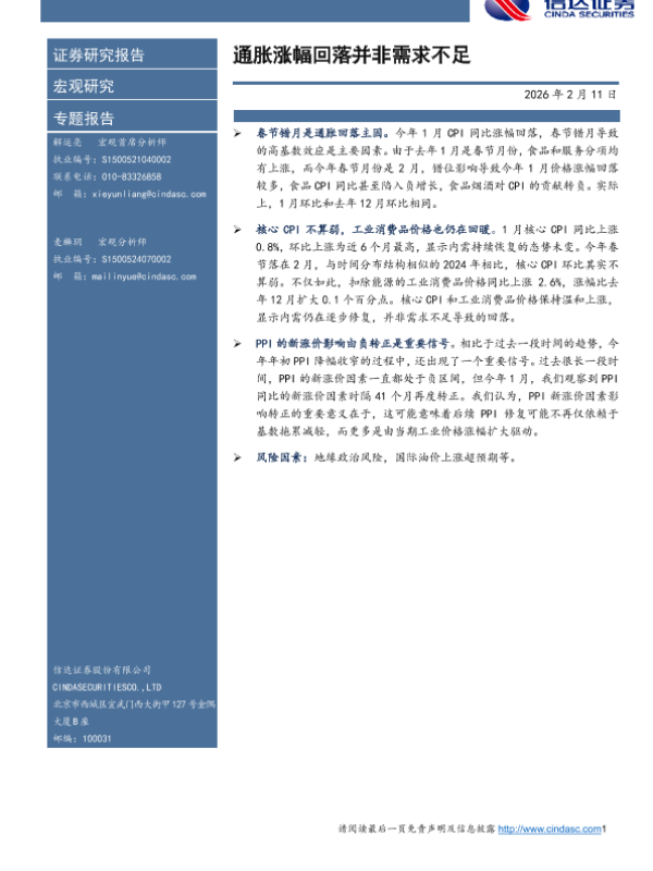 【信达证券】【202602】通胀涨幅回落并非需求不足-10页 证券期货研究报告