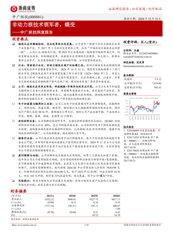 【浙商证券】【20241213】中广核技(000881)深度报告:非动力核技术领军者,蝶变-30页 行业研究