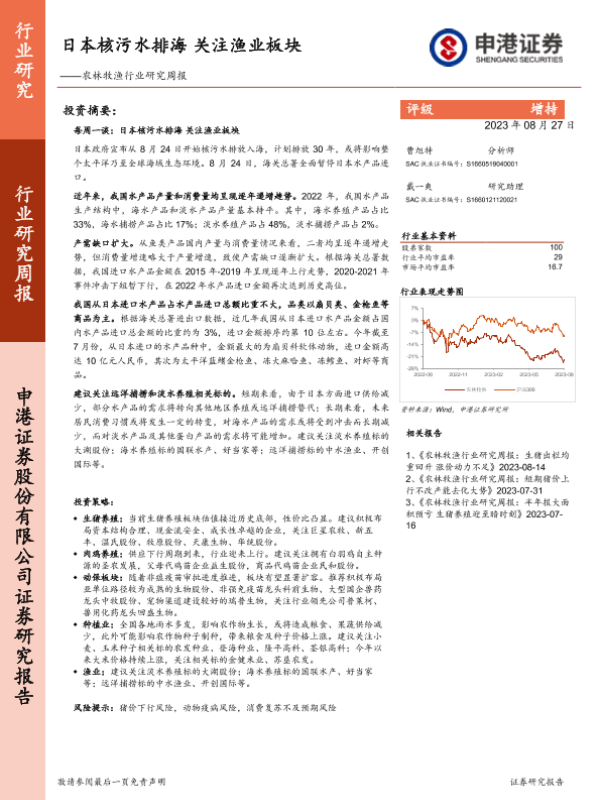 【申港证券】【20230827】20230827-申港证券-农林牧渔行业研究周报:日本核污水排海 关注渔业板块-13页 行业研究