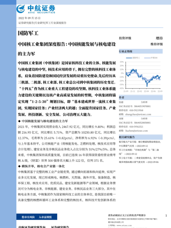【中航证券】【20220915】国防军工行业中国核工业集团深度报告:中国核能发展与核电建设的主力军-64页 行业研究