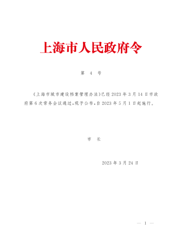 【上海市人民政府】【20230324】上海市城市建设档案管理办法-12页 政策文件