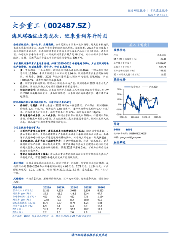 【国盛证券】【20250411】大金重工(002487)海风塔&桩出海龙头,迎来量利齐升时刻-26页 证券期货研究报告