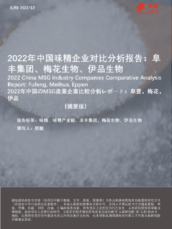 【头豹研究院】【202212】2022年中国味精企业对比分析报告:阜丰集团、梅花生物、伊品生物(摘要版)-9页 行业研究