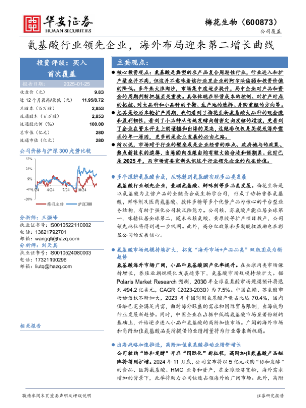 【华安证券】【20250125】梅花生物(600873)氨基酸行业领先企业,海外布局迎来第二增长曲线-53页 行业研究