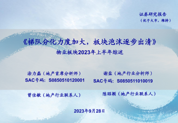 【海通证券】【20230928】物业板块2023年上半年综述:梯队分化力度加大,板块泡沫逐步出清-29页 行业研究