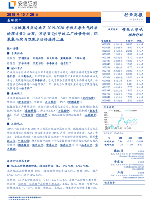 【安信证券】【20191020】信证券-基础化工行业周报:《京津冀及周边地区2019-2020年秋冬季大气污染治理方案》公布,万华宣Q4宁波工厂检修计划,环氧氯丙烷与双氧水价格连续上涨-8页 行业研究