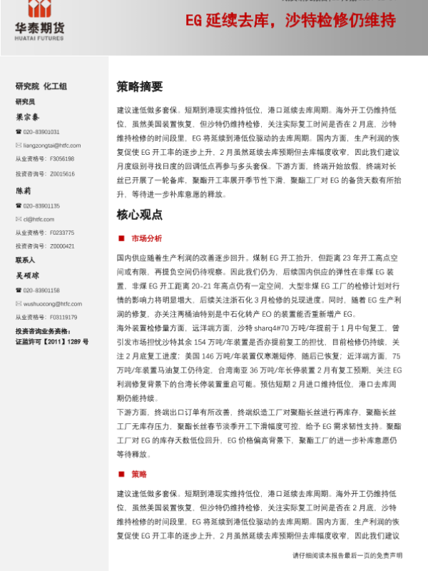 【华泰期货】【20240204】EG月报:EG延续去库,沙特检修仍维持-15页 行业研究