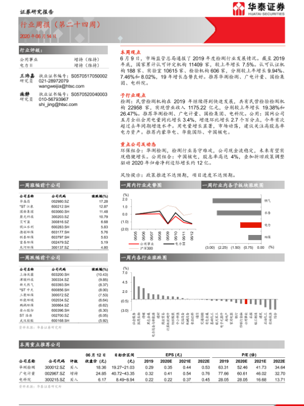 【华泰证券】【20200614】公用事业行业周报(第二十四周)-10页 行业研究