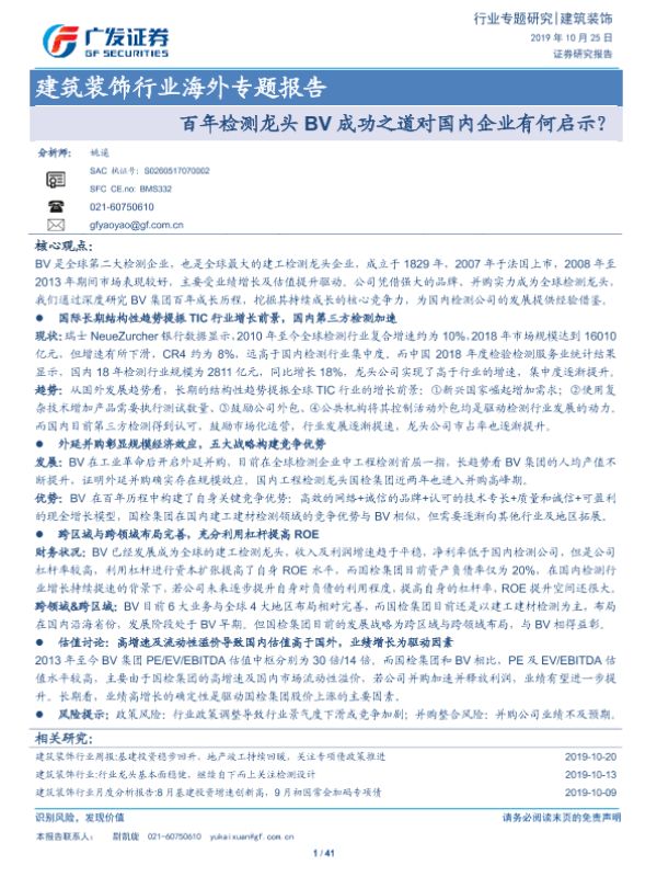 【广发证券】【20191025】建筑装饰行业海外专题报告:百年检测龙头BV成功之道对国内企业有何启示-41页 行业研究