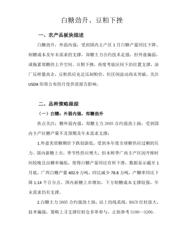 【天富期货有限公司】【202602】白糖劲升_豆粕下挫-7页 证券期货研究报告