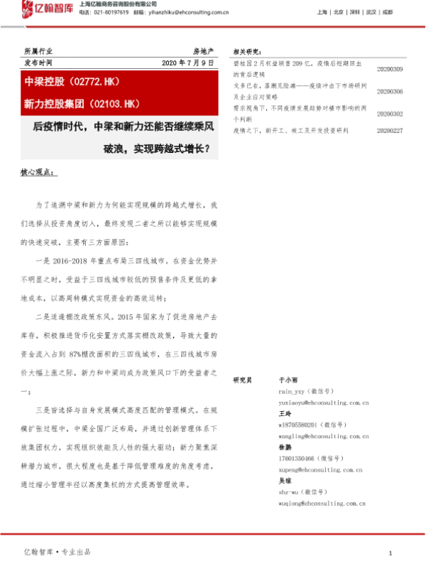 【上海亿翰商务咨询股份有限公司】【20200709】后疫情时代,中梁和新力还能否继续乘风破浪,实现跨越式增长?-14页 行业研究