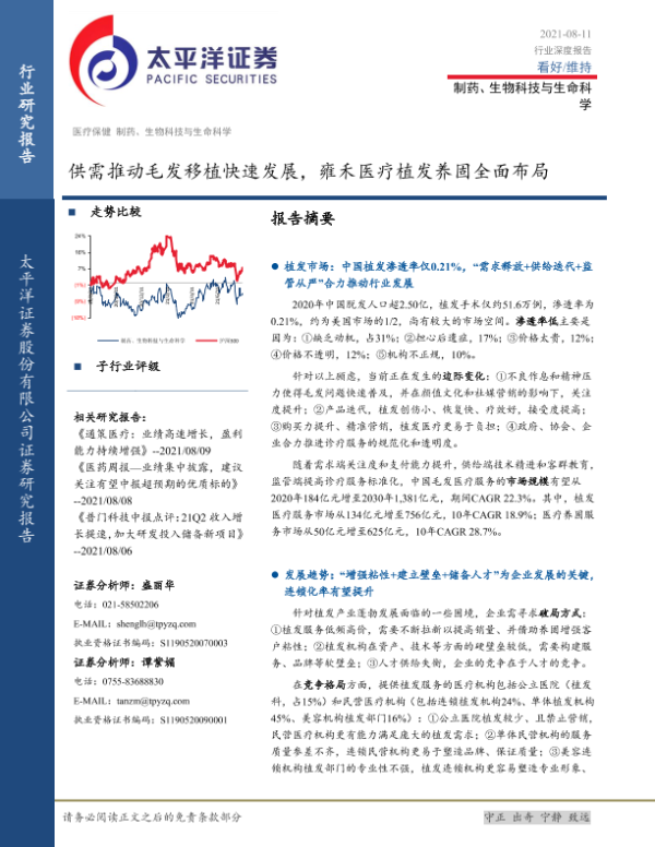 【太平洋证券】【20210811】供需推动毛发移植快速发展,雍禾医疗植发养固全面布局-44页 行业研究