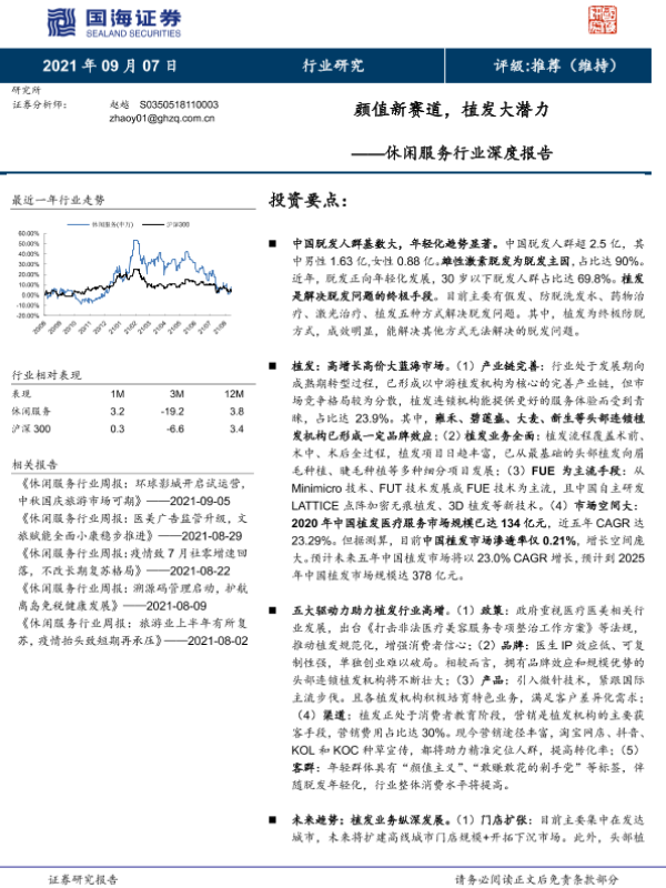 【国海证券】【20210907】休闲服务行业深度报告:颜值新赛道,植发大潜力-57页 行业研究