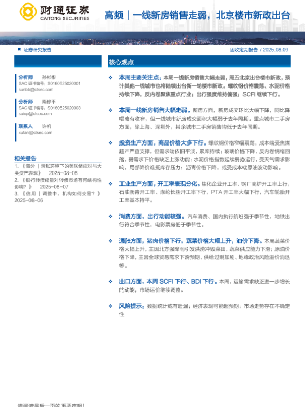 【财通证券】【202508】高频|一线新房销售走弱,北京楼市新政出台-14页 证券期货研究报告