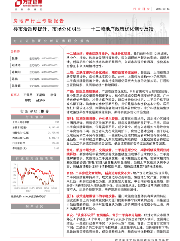 【方正证券】【20230914】房地产行业专题报告:十二城地产政策优化调研反馈,楼市活跃度提升,市场分化明显-17页 行业研究