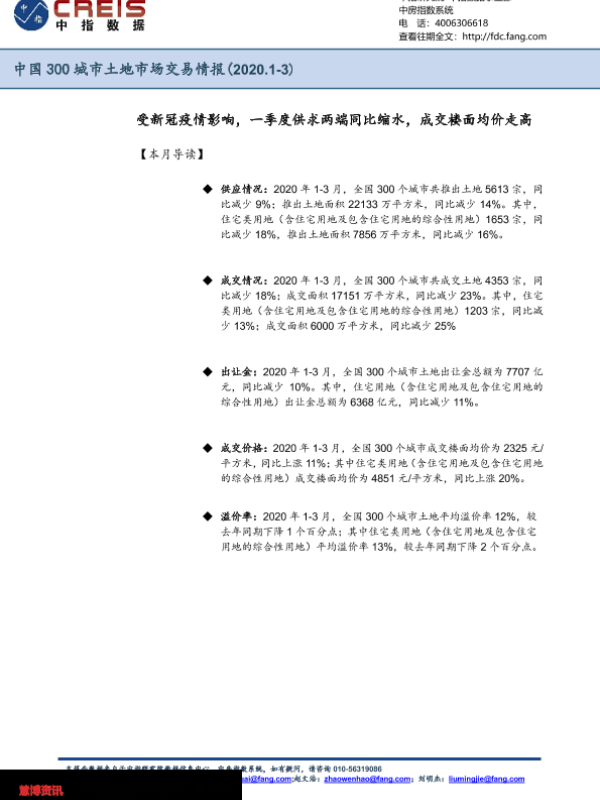 【中指研究院】【20200402】中国300城市土地市场交易情报-15页 行业研究