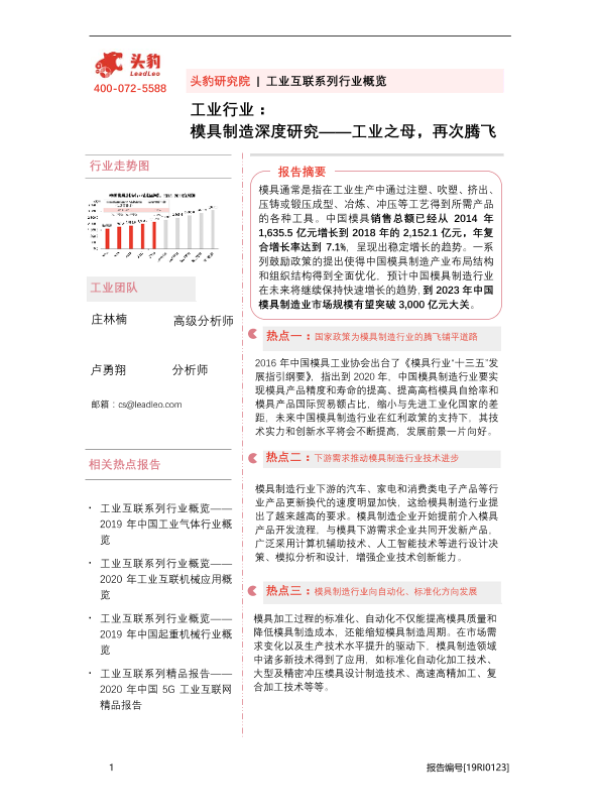 【头豹研究院】【20201104】工业行业:模具制造深度研究——工业之母,再次腾飞-33页 行业研究